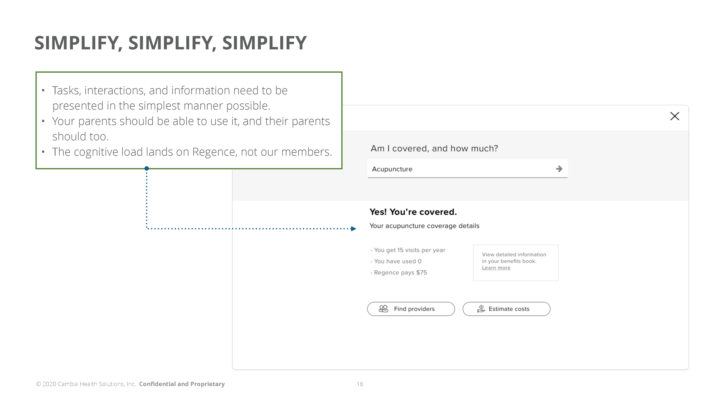 Members are already overwhelmed by health insurance. They want our site/app to give them just what they need, and show them where to look for more if they choose. If we continue to inundate them with noise, they will continue to be lost in our digital tools.