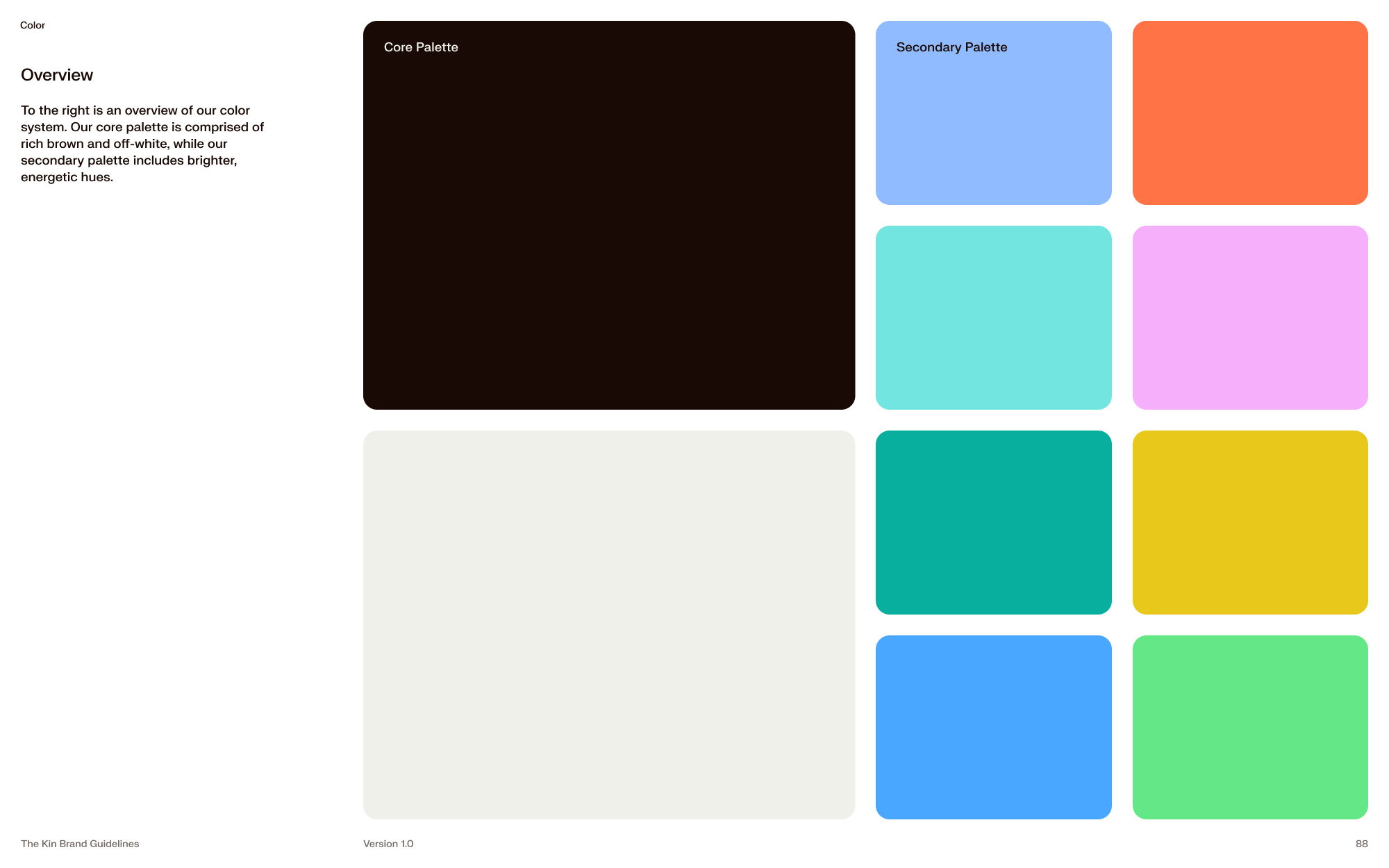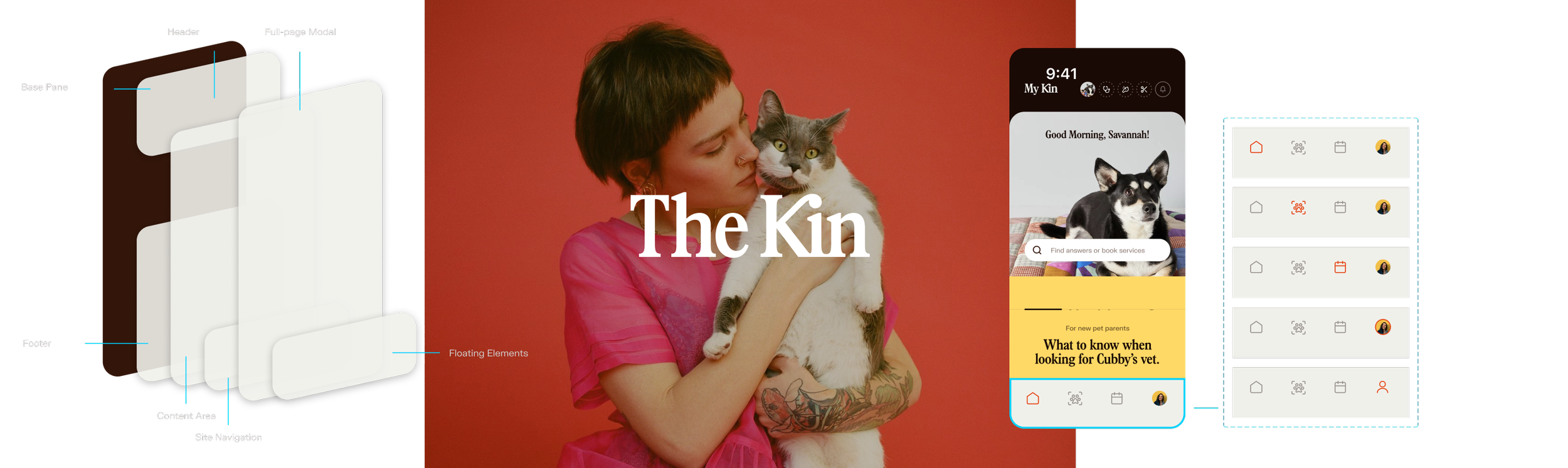 In parallel with building out our v.1 UI design system, we also began creating and defining The Kin’s brand identity and guidelines. This simultaneous effort ensured that our visual + UI design elements and brand principles were seamlessly integrated, resulting in a cohesive and unified product experience. No more silos!